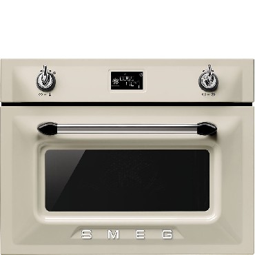 Piekarnik elektryczny z funkcją mikrofali 45 cm, 12 funkcji (4 z mikrofalami), emalia łatwoczyszcząca Ever Clean, 3 poziomy pieczenia, pojemność 40 lKremowy (chromowane pokrętła) |